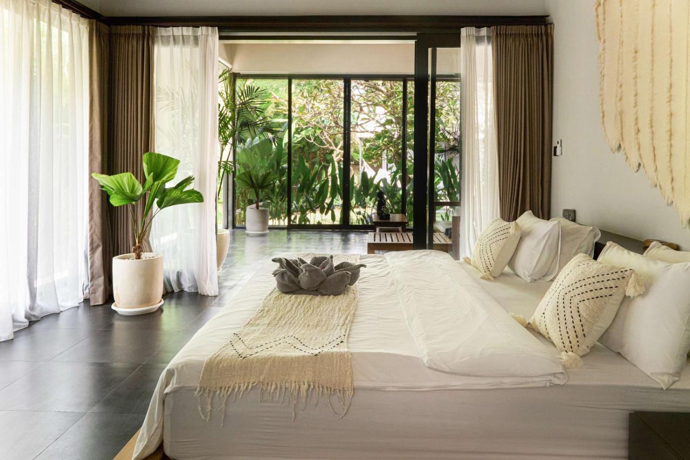 Three-Bedroom Villa. The private pool is a top feature of this villa. This spacious villa comes with 1 living room, 3 separate bedrooms and 3 bathrooms with a bath or a shower and free toiletries. Guests will find a stovetop, a refrigerator, kitchenware and a microwave in the fully equipped kitchen. The villa also includes a barbecue. The villa has air conditioning, a washing machine, a tea and coffee maker as well as a terrace with garden views. The unit has 3 beds.