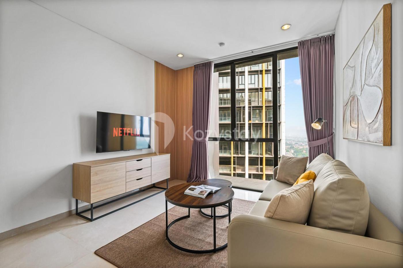 Two-Bedroom Apartment. This spacious apartment comprises 1 living room, 2 separate bedrooms and 2 bathrooms with a bath and free toiletries. The well-fitted kitchen features a stovetop, a refrigerator, kitchenware and a microwave. The air-conditioned apartment provides a flat-screen TV with streaming services, a washing machine, a seating area, a dining area as well as city views. The unit offers 2 beds.