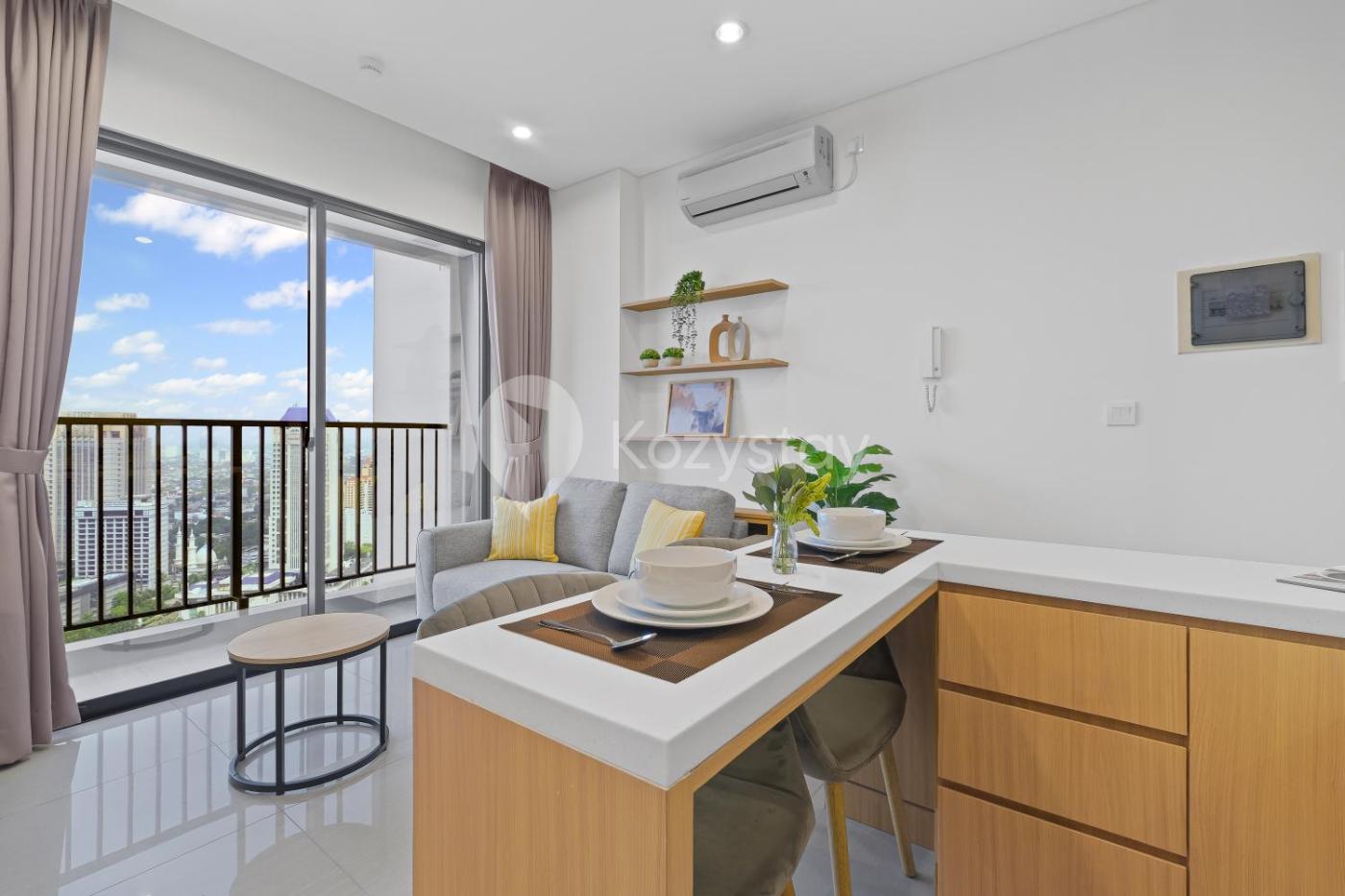 One-Bedroom Apartment. This apartment comes with 1 living room, 1 separate bedroom and 1 bathroom with a shower and free toiletries. Guests can make meals in the kitchen that features a stovetop, a refrigerator, kitchenware and a microwave. This air-conditioned apartment consists of a dining area, a flat-screen TV with streaming services a seating area and a balcony. The unit has 1 bed.