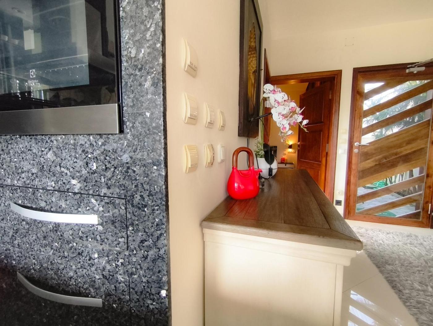 King Room. The private pool is the special feature of this double room. Guests will find a stovetop, a refrigerator, kitchenware and an oven in the well-equipped kitchen. The double room also provides guests with a barbecue. The spacious double room provides air conditioning, a private entrance, a terrace with garden views as well as a private bathroom featuring a bath. The unit offers 1 bed. ;