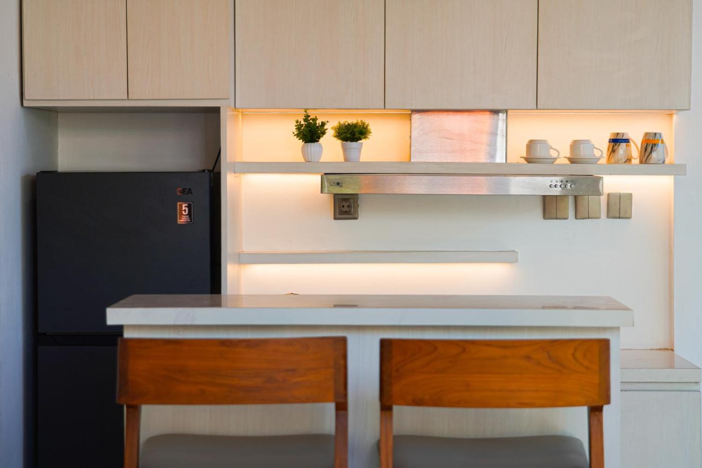 One-Bedroom Villa. Guests will have a special experience as the villa offers a private pool. Featuring a private entrance, this air-conditioned villa consists of a kitchen, 1 bedroom and 1 bathroom with a bath and a shower. Guests can make meals in the fully equipped kitchen that features a stovetop, a refrigerator and kitchenware. The villa provides a flat-screen TV with streaming services, a tea and coffee maker, a seating area, a dining area as well as garden views. The unit offers 1 bed.